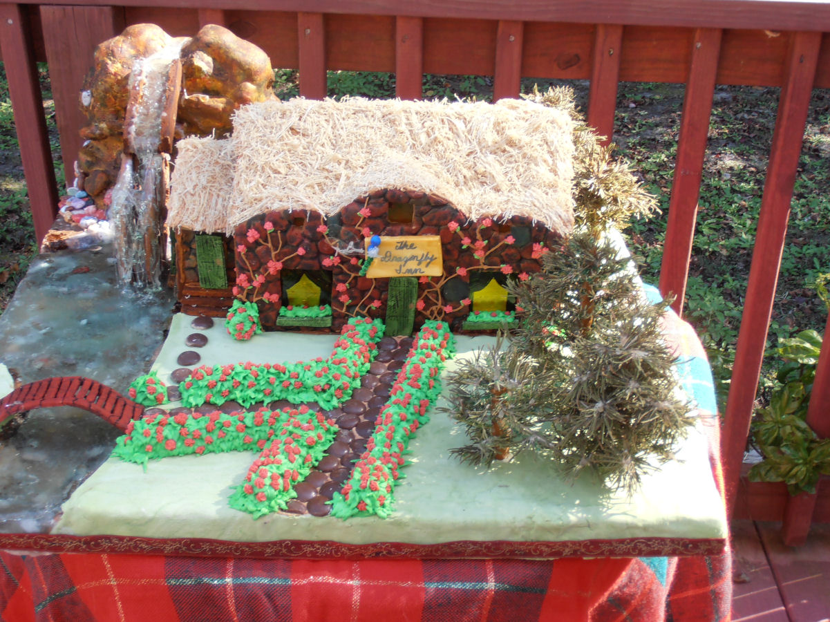 Entirely edible log cabin and outhouse by MaryLou Bullerman