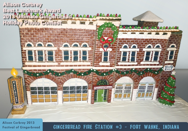 | Description: 2013 Ultimate Gingerbread Holiday Gingerbread Contest - Best Landmark This Gingerbread Fire House was for the Festival of Gingerbread in Fort Wayne, Indiana. Each year the History Center of Fort Wayne, Indiana hosts a competition featuring historic landmarks in and around Fort Wayne. Fire Station #3 was built in 1893 and now serves as the Firefighter's Museum in Fort Wayne. I used Gingerbread for the brick walls and all of the signs and I painted the signs with food coloring. I used Royal Icing for the windows and also for the architectural details on the front facing and the Christmas greenery. The roof is covered in poppy seeds and the Christmas lights on the roof are chocolate covered sunflower seeds. I've been inspired by so many artists out there, but most especially with the entries to the National Gingerbread competition in NC.. Stats: Views: 1008 Total Favorities: 0 View Who Favorited Posted by: GingerbreadExchange September 22, 2014, 11:48:42 amTotal Likes: 0
