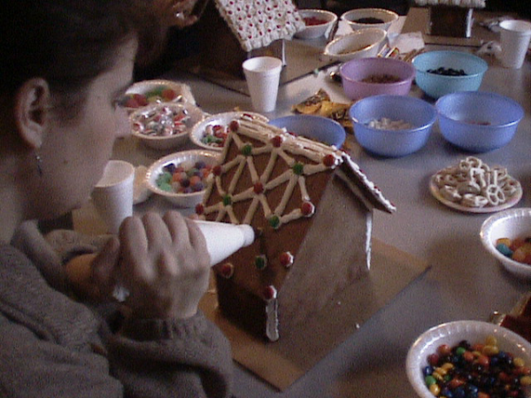 | Description: Elf House Gingerbread House - Valley River Assembly of God gingerbread party (pattern by Ultimate Gingerbread/Gingerbread-By-Design)