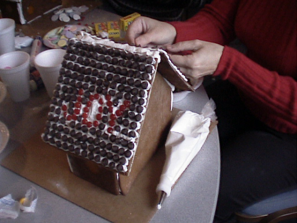 | Description: Elf House Gingerbread House - Valley River Assembly of God gingerbread party (pattern by Ultimate Gingerbread/Gingerbread-By-Design)