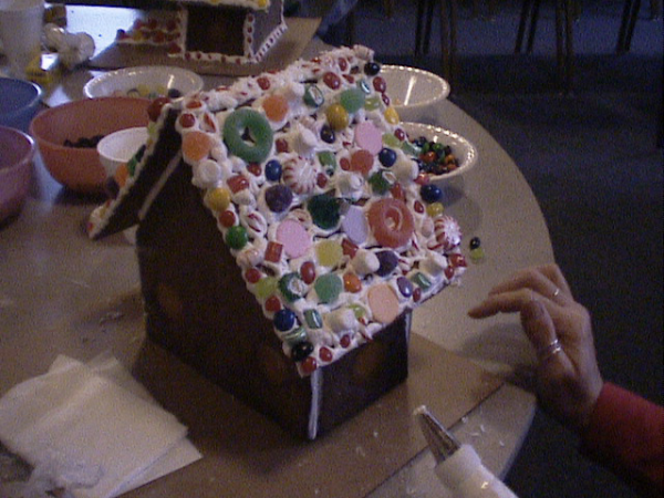 | Description: Elf House Gingerbread House - Valley River Assembly of God gingerbread party (pattern by Ultimate Gingerbread/Gingerbread-By-Design)