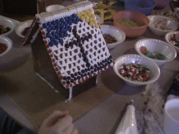 | Description: Elf House Gingerbread House - Valley River Assembly of God gingerbread party (pattern by Ultimate Gingerbread/Gingerbread-By-Design)