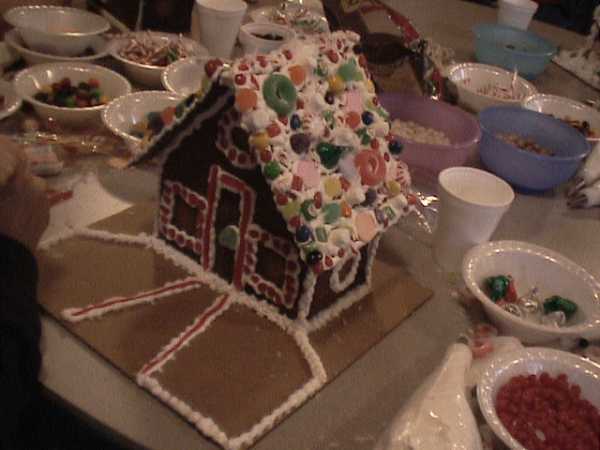 | Description: Elf House Gingerbread House - Valley River Assembly of God gingerbread party (pattern by Ultimate Gingerbread/Gingerbread-By-Design)