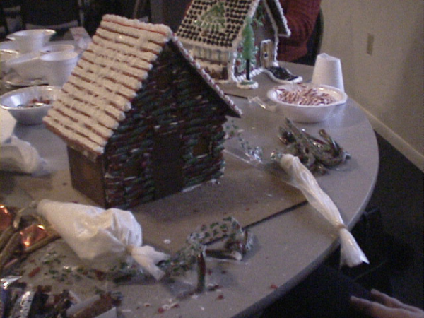 | Description: Elf House Gingerbread House - Valley River Assembly of God gingerbread party (pattern by Ultimate Gingerbread/Gingerbread-By-Design)