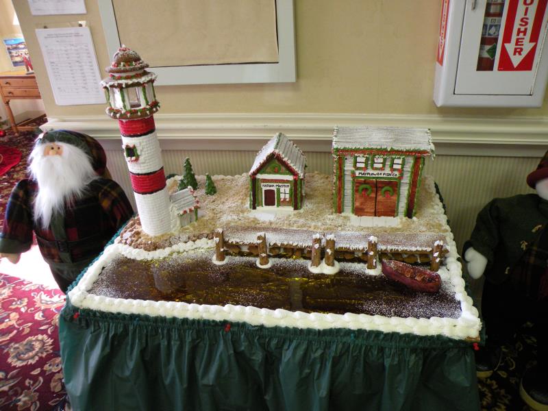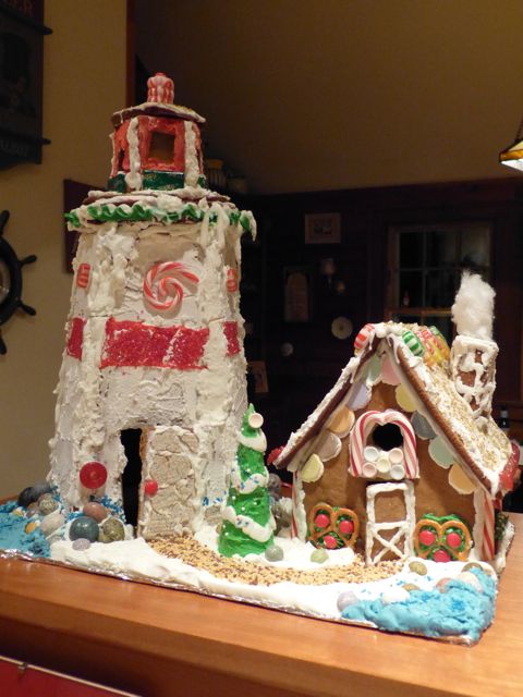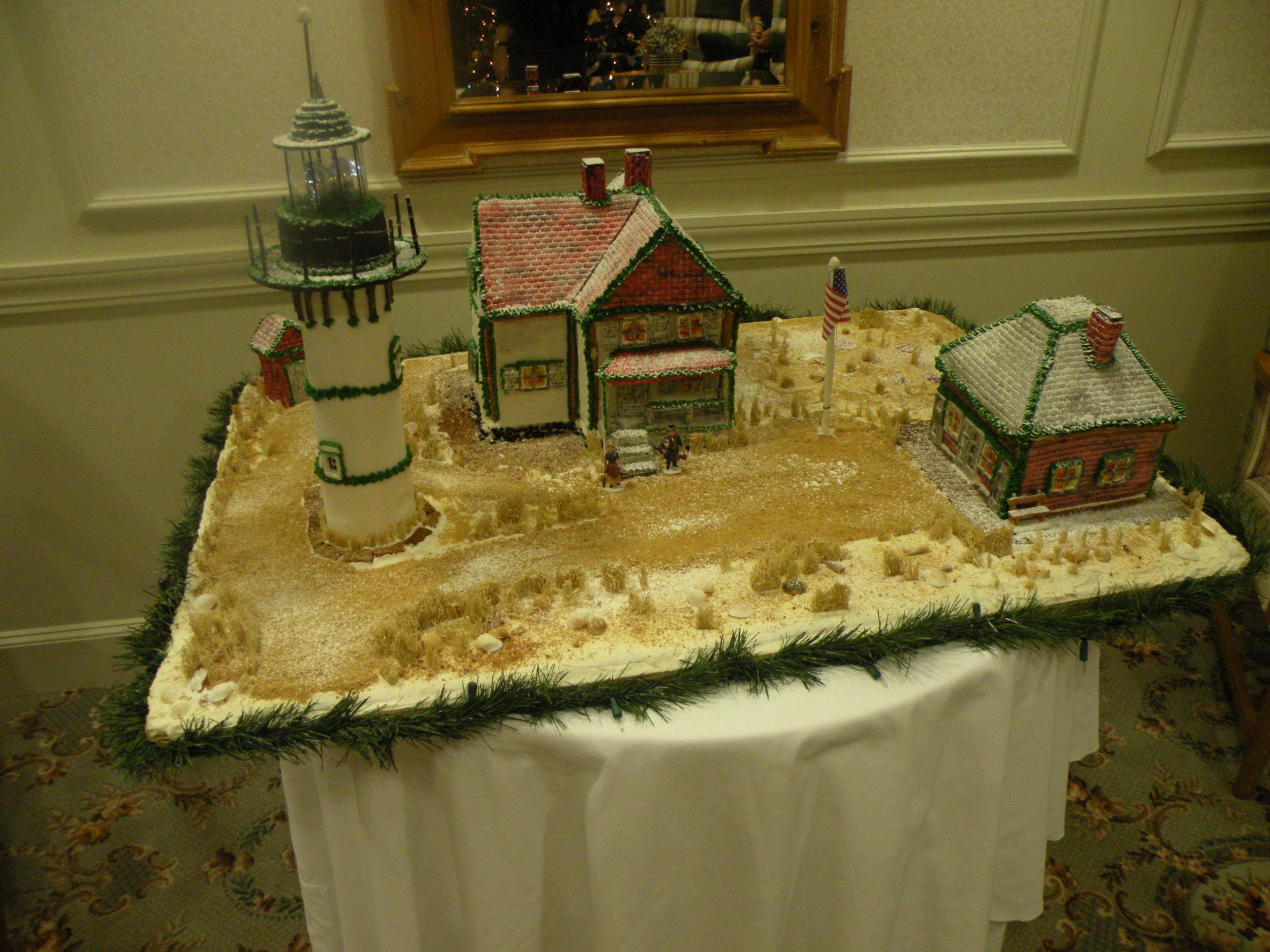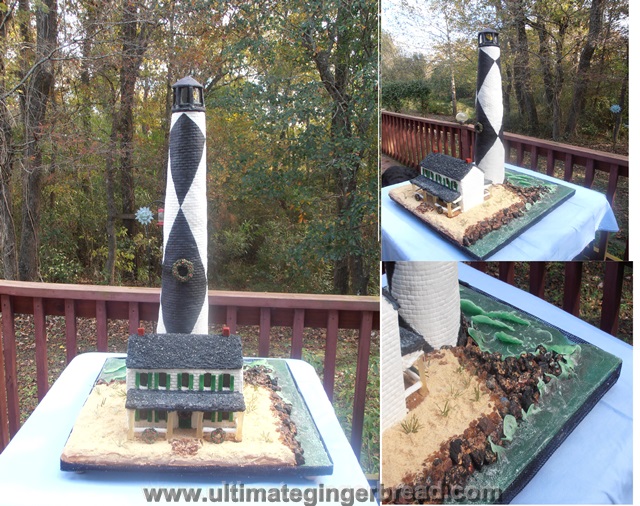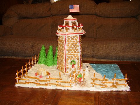 Gingerbread Lighthouse with Rocky Shoreline (also lights up) by Christa Savery Dunn