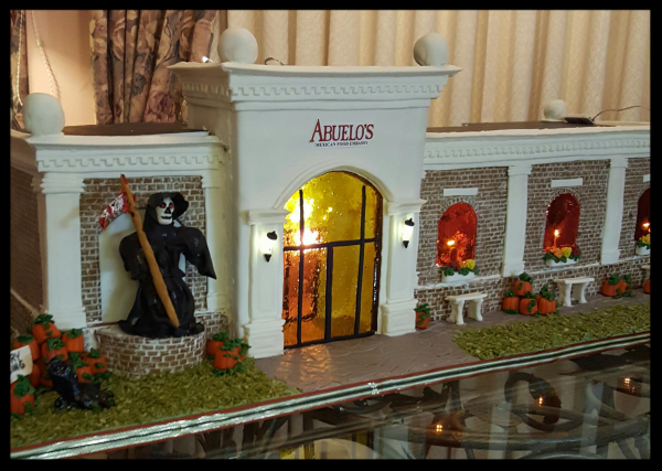 | Description: Abuelo's Restaurant all dressed up for trick or treat at Halloween. In gingerbread, modeling chocolate, royal icing, fondant, gumpaste and pastillage.