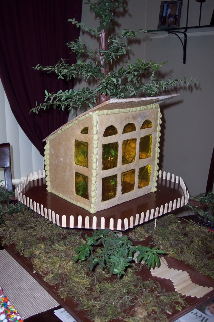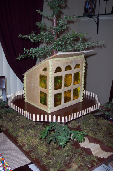 Description: Tree House - Gingerbread House. The designer (my hubby) chose to not use any candy!