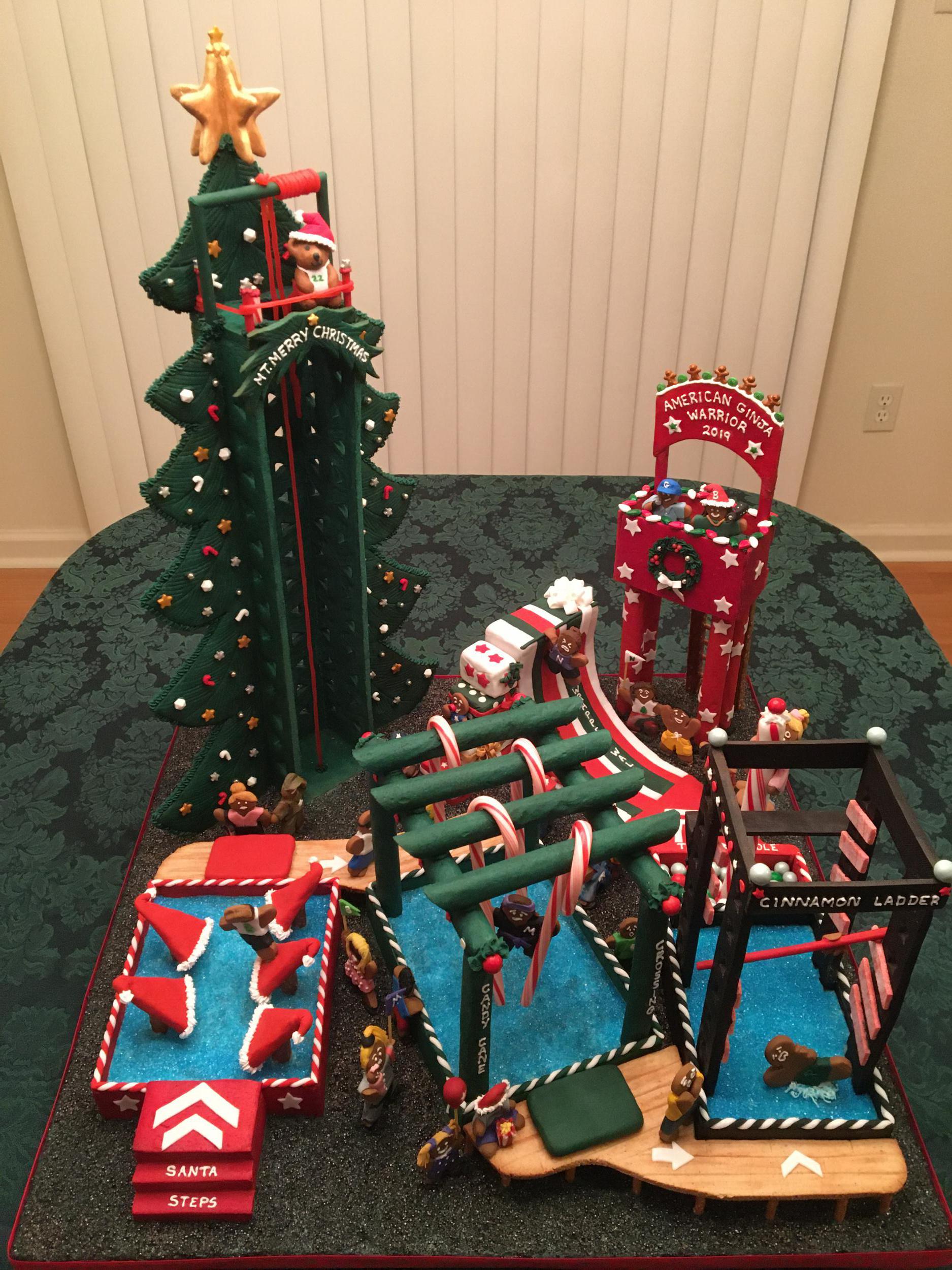 | Description: Barb Amabile wins the People's Choice Award for the best non-structure, with her American Ginja Warrior gingerbread display, Barb entered a holiday obstacle course inspired by the tv sports competition American Ninja Warrior! Gingerbread family members have been cast as Ginja competitors and fans, and the entire display is made from edible materials. Structures are made from colored gingerbread and the figures are made from fondant.